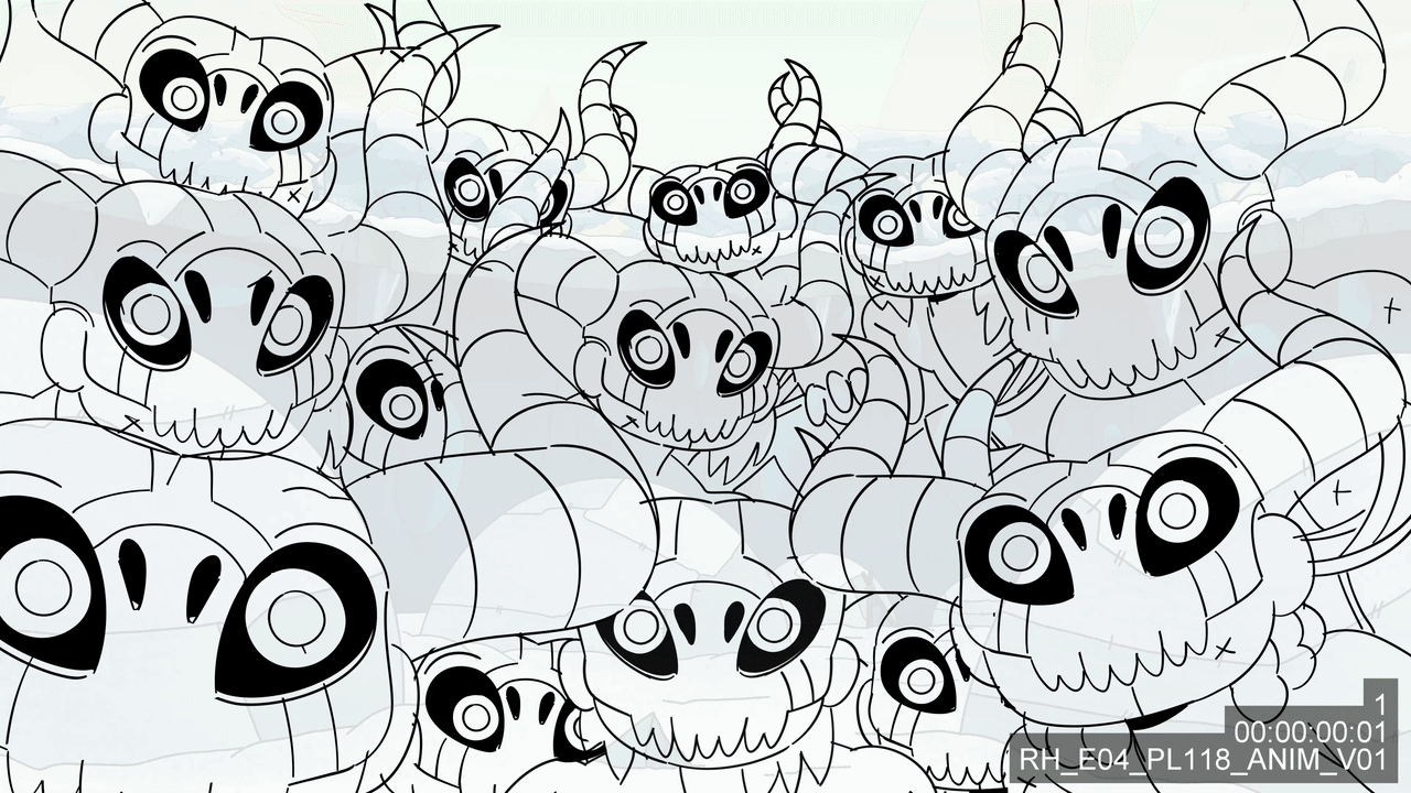 Ma participation dans cette production a été d’abord en Animation Couleur sur l’épisode 03, puis en Animation Clean sur l’épisode 04 une fois que je m’étais habituée au style de la série. Tout a été animé sur ToonBoom Harmony.